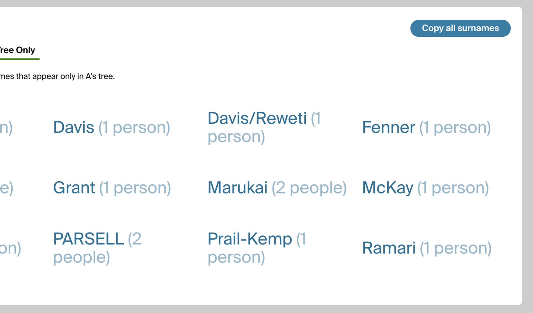 - Ensure all surnames are visible (expanded) and click the Copy all surnames button.