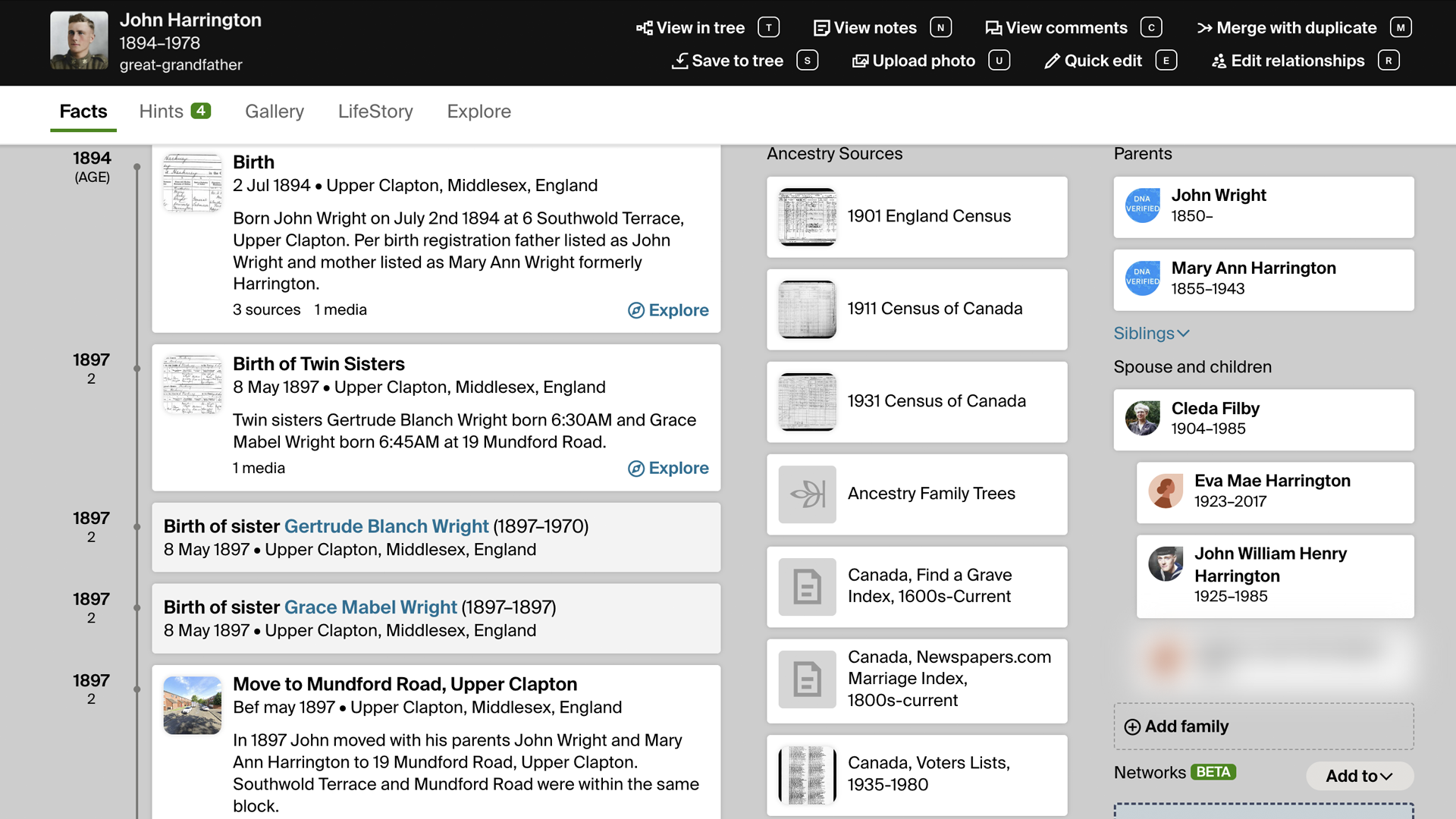 With this update, Ancestry’s research tools must be enabled enabled by visiting any profile page and clicking on the “Tools” menu, then selecting “Show research tools”.