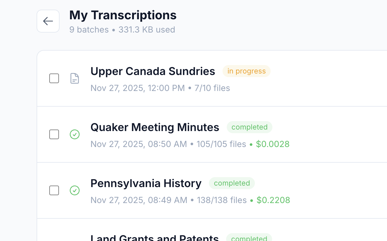 OpenTranscribe is a free browser extension that helps genealogists, historians, and researchers transcribe large collections of historical documents using public, open AI models. Simply drag and drop a folder of images, select your AI model, and let OpenTranscribe get to work.