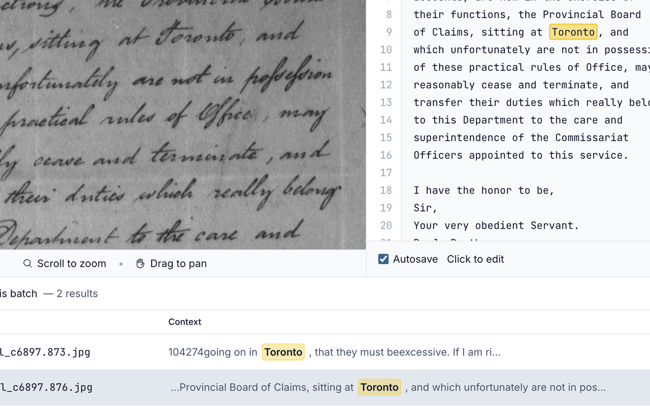 - Use the handy built-in editor to correct or reprocess your transcriptions in a side by side view with the original image.